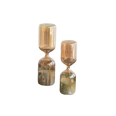 Gulches Copper Gray White Rounded Glass 2 in Decorative Hourglass Set of 2
