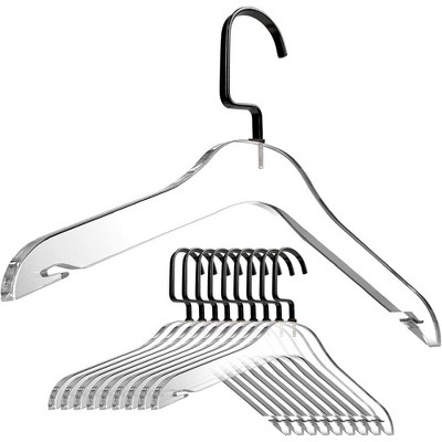 Designstyles Clear Acrylic Clothes Hangers, Heavy-Duty Closet Organizers with Shiny Black Chrome Hooks, Perfect for Suits and Sweaters - 10 Pack