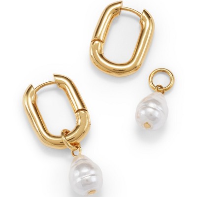 Lands' End Water-Resistant Convertible Pearl Hoop Earrings