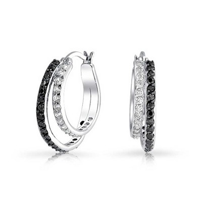 Bling Jewelry Black White Circle Cubic Zirconia Pave CZ Prom Double Hoop Earrings 1.5 Inch Diameter