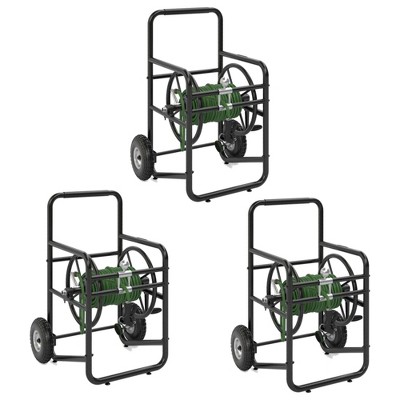 Suncast Professional Portable 200 Foot Powder-Coated Steel Hose Reel Cart with Wheels for Landscaping, Yard, Garden, & Utility Use, Black (3 Pack)