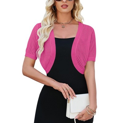 Womens Lightweight Shrugs Short Sleeve Open Front Cropped Cardigan Crochet Knit Sweater