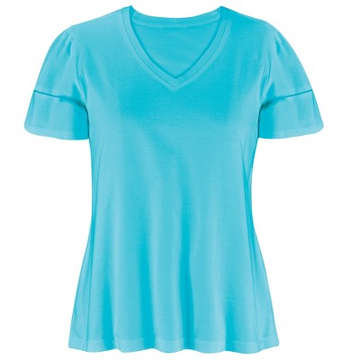 Clearlove Blouse Top, V Neck Breathable Short Sleeve Shirt Soft Stylish Youthful Double Layered Ruffle Sleeves for Party.