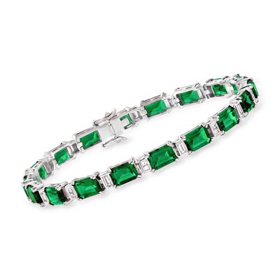 Ross-Simons 18.00 ct. t.w. Simulated Emerald and .60 ct. t.w. CZ Bracelet in Sterling Silver