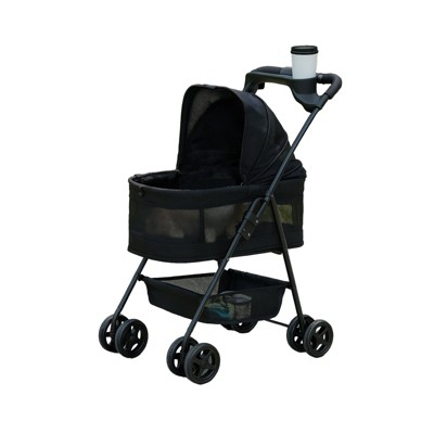 TODECARE 3-in-1 Folding Pet Stroller for Small to Medium Dogs and Cats up to 50 lbs with Storage Basket, Black
