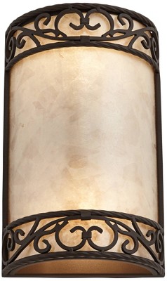 Franklin Iron Works Mission Wall Light Sconce Rustic Bronze Hardwired 14 1/2" Wide Fixture Scavo Glass Bedroom Bathroom Hallway