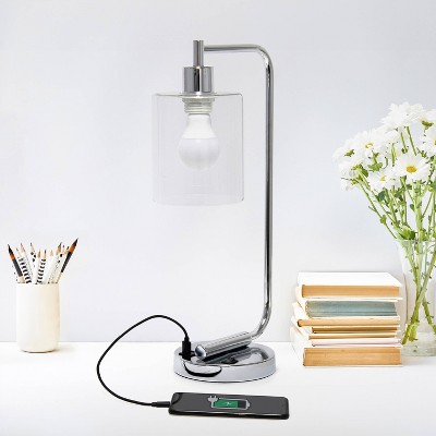 Creekwood Home Vintage Vantage 18.8" Curved Arm Desk Lamp with Glass Shade and USB Ports