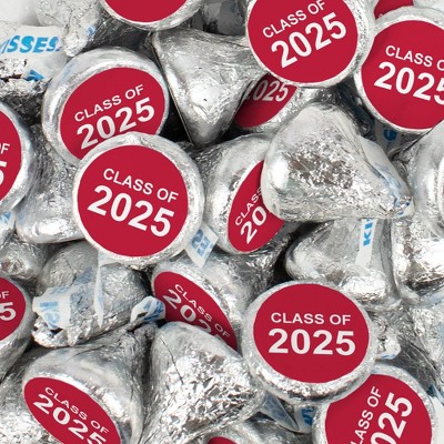85 Pcs Red Graduation Candy Hershey's Kisses Milk Chocolate Class of 2025 (13.6oz, Approx. 85 Pcs) - By Just Candy