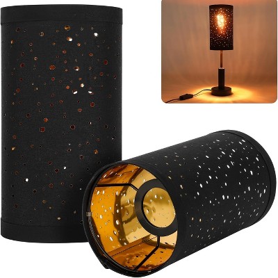 2-Pack Black & Gold Metal Lamp Shades, 7x13x7.8 Inch Barrel Design with Floral Etching, Spider Fitter for Table Lamps