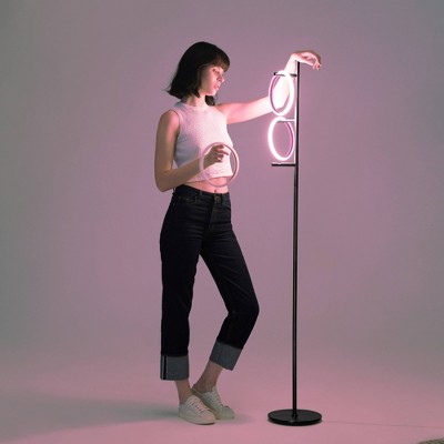 Brightech Saturn Modern Removable Ring Light Integrated LED Tree Floor Lamp Matte Black: RGB LED, Dimmable, 3 Rings, UL Listed, Metal