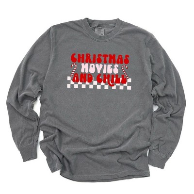 Simply Sage Market Women's Christmas Movies and Chill Checkered Long Sleeve Garment Dyed Graphic Tee