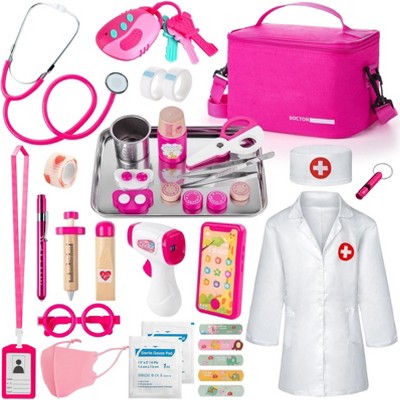 Etokfoks Kids Doctor Kit 34 Piece Set with Real Working Stethoscope Washable Costume Carry Case Pretend Medical Toys for Ages 3 7