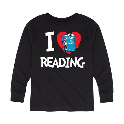 Boys' - Dr. Seuss - The Cat In The Hat Book Cover I Love Reading Long Sleeve Graphic T-Shirt