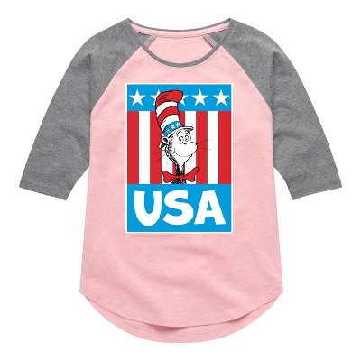 Girls' - Dr. Seuss - Cat in The Hat USA Shirt Tail Raglan Graphic T-shirt