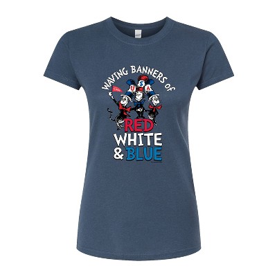 Women's - Dr. Seuss - Cat in the Hat Waving Banners Red White Blue Fitted Graphic T-Shirt