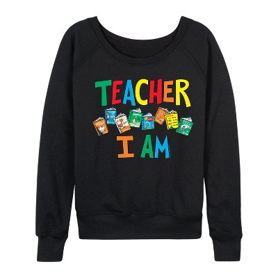 Women's - Dr. Seuss - The Cat In The Hat Book Cover Teacher I Am Lightweight French Terry Wide Neck Long Sleeve Graphic Shirt