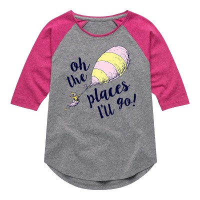 Girls' - Dr. Seuss - Oh! The Places I'll Go Shirt Tail Raglan Graphic T-shirt