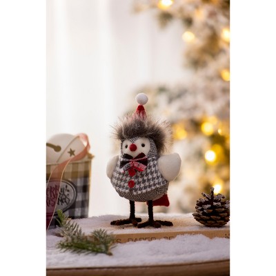 Gulches 3.9x4.3x6.3" Fabric Bird with Plaid Bow-Tie Set of 2, Halloween Decor