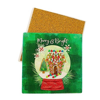 Coasterstone 4.25 In Merry & Bright Snowglobe Coaster Christmas Coaster , Gingerbread Tree Snowflakes (1PC)