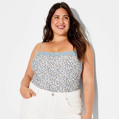 Women's Lace Trim Cropped Cami Top - Wild Fable™ Light Blue