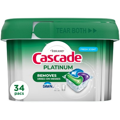 Cascade Fresh Platinum Pods Dishwasher Detergents - 34ct: Plastic Tub, Glass Protectant, Removes Grease, Multi-Surface