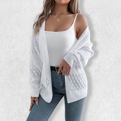 Womens Crochet Cardigan Short Sleeve Open Front Lightweight Casual Sweater Caridgan