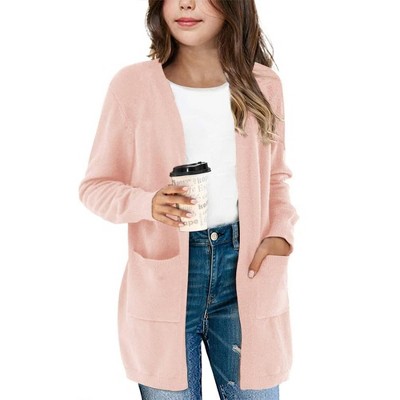 Girl's Open Front Cardigan Long Sleeve Knit Sweaters Kids Solid Cute Casual Loose Outerwear Coats with Pockets