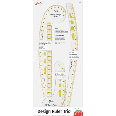 Dritz Ruler Design Trio: Acrylic Sewing & Quilting Supplies, Drafting Rulers, Clear Craft Mats, 25.5" x 11"