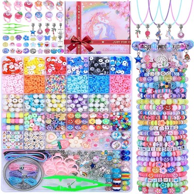 Etokfoks 3654 Piece Arts and Crafts Bead Kit for Kids DIY Jewelry Making Includes Charms Clay Letter Beads Strings Ages 6 and Up