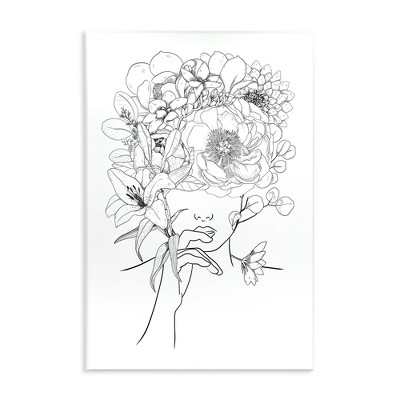 Stupell Industries Line Drawing Botanical Floral Bouquet Over Person Face, 13" x 19"