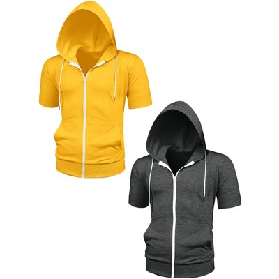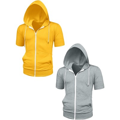 Lars Amadeus Men's Solid Color Zipper Short Sleeves Hoodies Sweatshirt 2 Packs