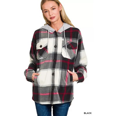 I am a Fashion Junky Plaid Drawstring Hooded Fleece Shacket