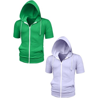 Lars Amadeus Men's Solid Full Zip Short Sleeves Hooded Sweatshirt 2 Packs