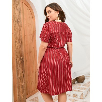Plus Size Women's Wrap V-Neck Short Sleeve Dress with Drawstring Waist Flowy Midi Summer Dress