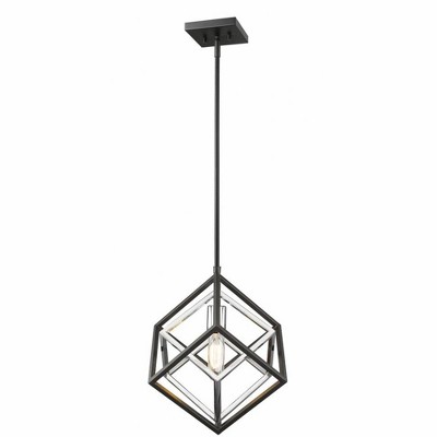 Euclid Mini Pendant Light - Modern Steel Design, Dimmable, 1-Bulb, 12" Cube, Chrome/Black