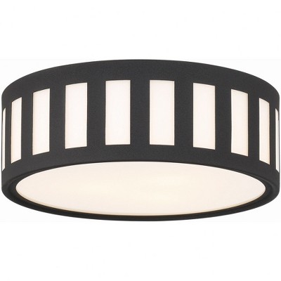 Possini Euro Design Henning 15 1/2" Modern Flush-Mount Ceiling Light Fixture Kitchen Foyer Hallway Round Black White Glass Shade Bedroom Bathroom