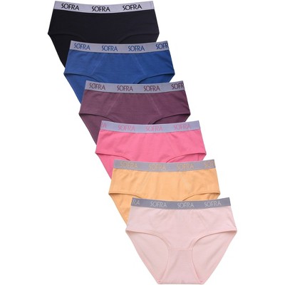 PACK OF 6 SOFRA WOMEN'S COTTON BLEND LOGO BAND SOLID BIKINI PANTY WITH EXTENDED SIDE SEAMS (LP1421CKE4)