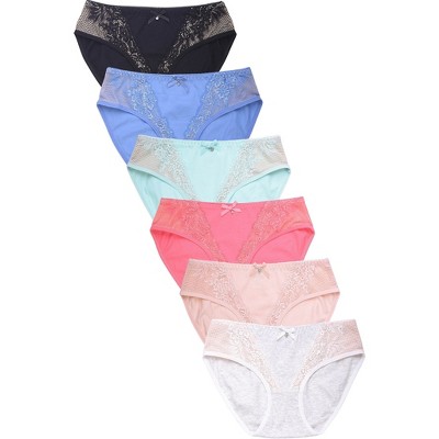 PACK OF 6 SOFRA WOMEN'S COTTON BLEND SOLID BIKINI LACE TRIM PANTY WITH EXTENDED SIDE SEAMS (LP1416CKE1)