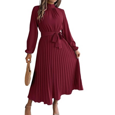 WhizMax Women's 2024 Long Sleeve Mini Sweater Dress Crewneck Ribbed Knit A Line Pleated Swing Short Dresses
