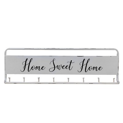 Olivia & May 19" x 5" Wood and Metal Rhino Sculpture Wall Mounts Decorative Wall Hook Rack with 3 Hooks: Iron Finish
