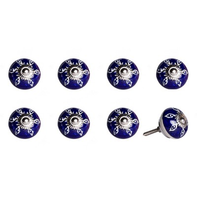 HomeRoots Set of Eight Blue And White Ceramic And Metal Drawer Pull Knobs