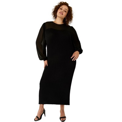 June & Vie Mesh-Overlay Maxi Dress