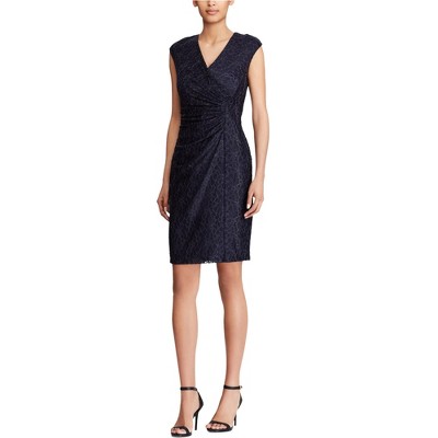 Connected Apparel Womens Glitter Floral Lace Shift Dress