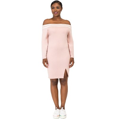 Poetic Justice Curvy Women's Atheletic Stripe Off-The-Shoulder Knee-Length Dress