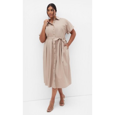 Women's Plus Size Elly Shirt Dress - ecru | CITY CHIC