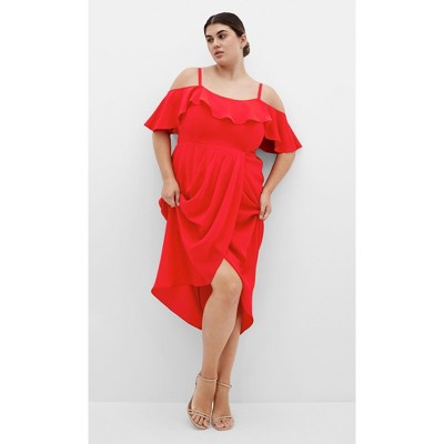 Women's Plus Size Flirtation Drape Midi Dress - cerise | CITY CHIC