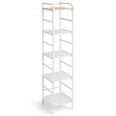 - white metal storage shelves
