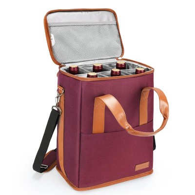 Tirrinia 6 Bottle Wine Gift carrier - Insulated & Padded Wine Carrying Cooler Tote Bag with Adjustable Shoulder Strap for Travel or Picnic