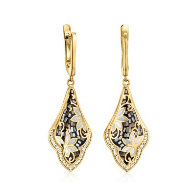 Ross-Simons White and Gray Mother-Of-Pearl and .50 ct. t.w. White Zircon Drop Earrings in 18kt Gold Over Sterling