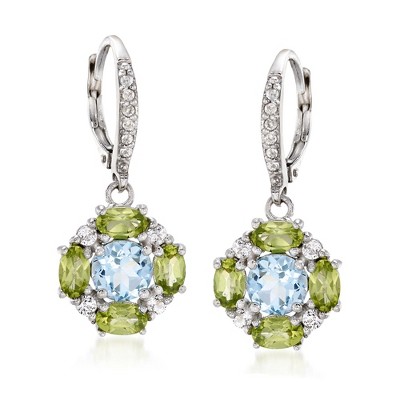 Ross-Simons Turquoise and 18kt Gold Over Sterling Leaf Drop Earrings